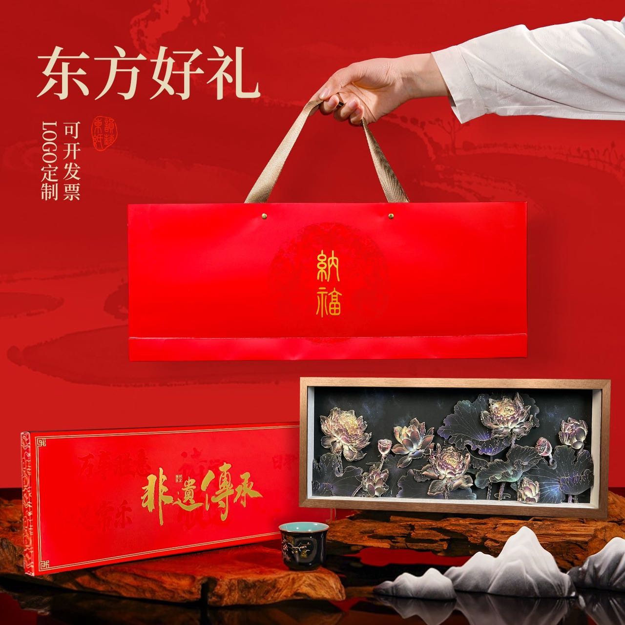 Intangible cultural heritage paper-cut mural with gift box